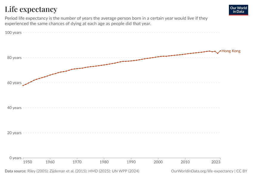 In 2023, Hong Kong’s life expectancy at birth was 85.5 years.