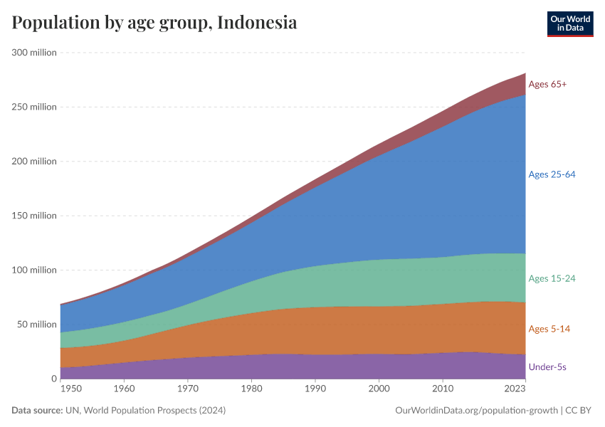 Hannah Ritchie (2026) - “Population and Demography” Published online at OurWorldinData.org. Retrieved from: 'https://ourworldindata.org/profile/population-demography/indonesia' [Online Resource]BibTeX citation