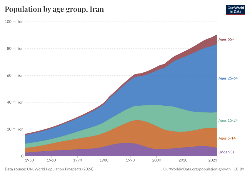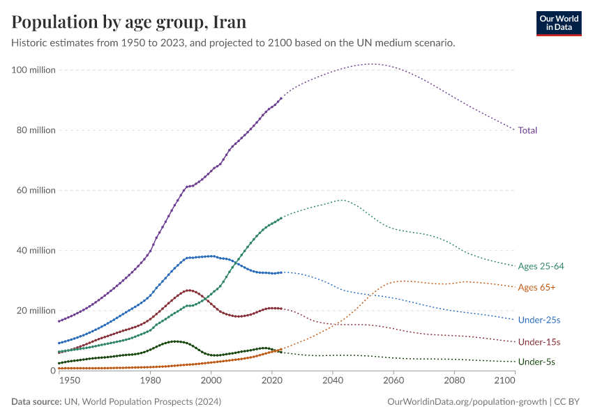 Hannah Ritchie (2026) - “Population and Demography” Published online at OurWorldinData.org. Retrieved from: 'https://ourworldindata.org/profile/population-demography/iran' [Online Resource]BibTeX citation