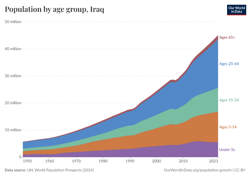 Hannah Ritchie (2026) - “Population and Demography” Published online at OurWorldinData.org. Retrieved from: 'https://ourworldindata.org/profile/population-demography/iraq' [Online Resource]BibTeX citation
