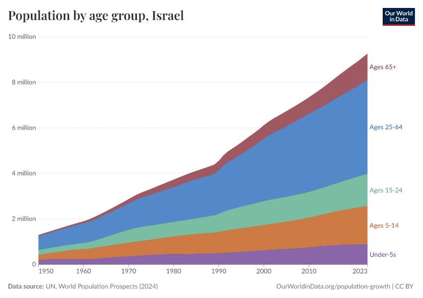 Hannah Ritchie (2026) - “Population and Demography” Published online at OurWorldinData.org. Retrieved from: 'https://ourworldindata.org/profile/population-demography/israel' [Online Resource]BibTeX citation