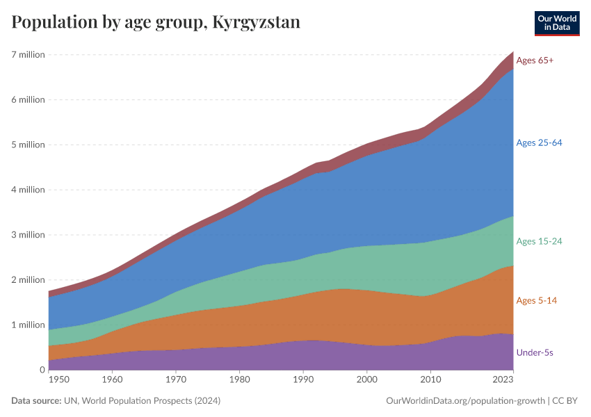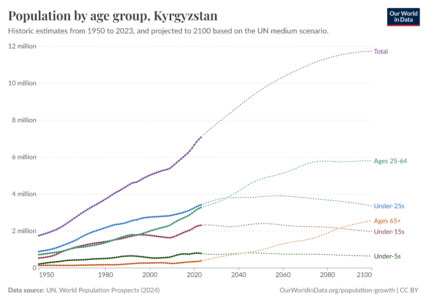 Hannah Ritchie (2026) - “Population and Demography” Published online at OurWorldinData.org. Retrieved from: 'https://ourworldindata.org/profile/population-demography/kyrgyzstan' [Online Resource]BibTeX citation