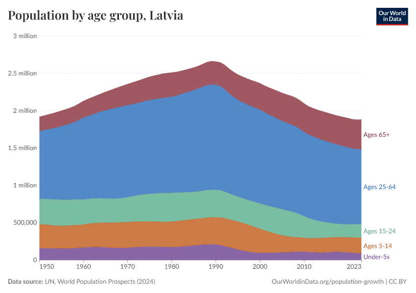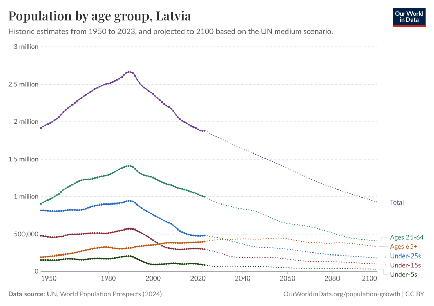 Hannah Ritchie (2026) - “Population and Demography” Published online at OurWorldinData.org. Retrieved from: 'https://ourworldindata.org/profile/population-demography/latvia' [Online Resource]BibTeX citation