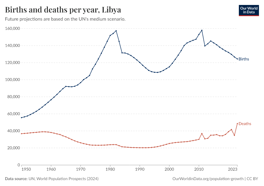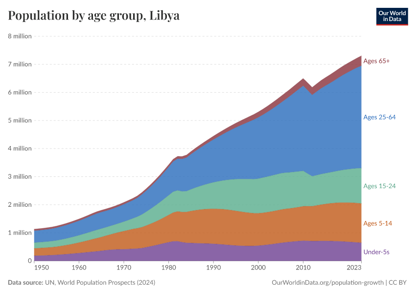 Hannah Ritchie (2026) - “Population and Demography” Published online at OurWorldinData.org. Retrieved from: 'https://ourworldindata.org/profile/population-demography/libya' [Online Resource]BibTeX citation