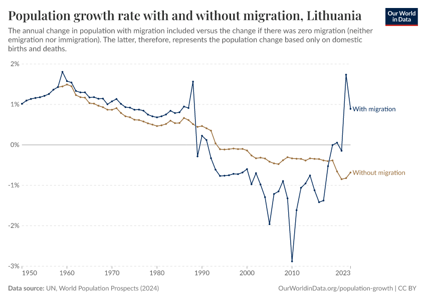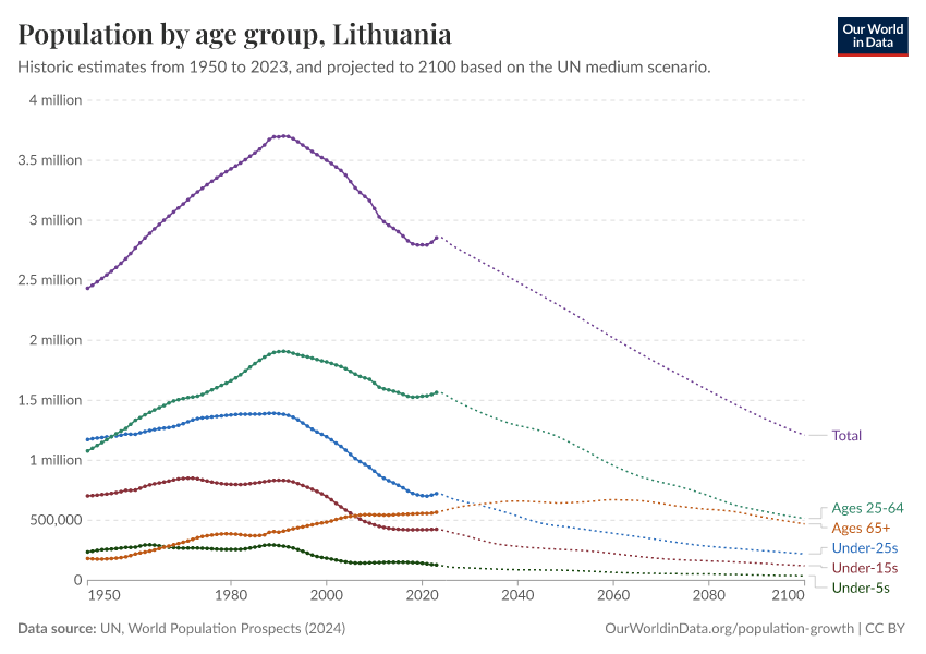 Hannah Ritchie (2026) - “Population and Demography” Published online at OurWorldinData.org. Retrieved from: 'https://ourworldindata.org/profile/population-demography/lithuania' [Online Resource]BibTeX citation