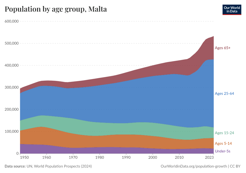 Hannah Ritchie (2026) - “Population and Demography” Published online at OurWorldinData.org. Retrieved from: 'https://ourworldindata.org/profile/population-demography/malta' [Online Resource]BibTeX citation