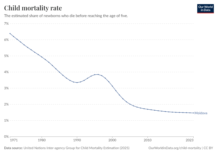 In Moldova, 1.5% of children under the age of five died in 2023.