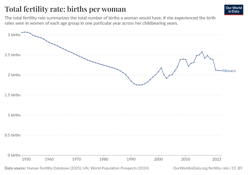 In 2023, Monaco’s total fertility rate was 2.11 births per woman.
