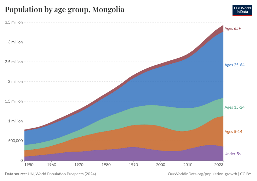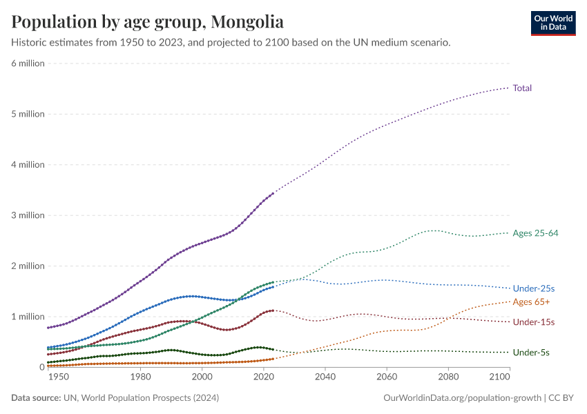 Hannah Ritchie (2026) - “Population and Demography” Published online at OurWorldinData.org. Retrieved from: 'https://ourworldindata.org/profile/population-demography/mongolia' [Online Resource]BibTeX citation