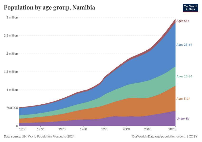 Hannah Ritchie (2026) - “Population and Demography” Published online at OurWorldinData.org. Retrieved from: 'https://ourworldindata.org/profile/population-demography/namibia' [Online Resource]BibTeX citation