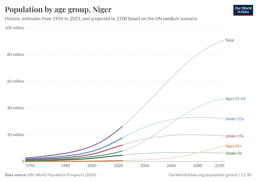 Hannah Ritchie (2026) - “Population and Demography” Published online at OurWorldinData.org. Retrieved from: 'https://ourworldindata.org/profile/population-demography/niger' [Online Resource]BibTeX citation