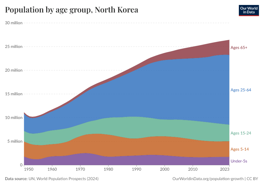 Hannah Ritchie (2026) - “Population and Demography” Published online at OurWorldinData.org. Retrieved from: 'https://ourworldindata.org/profile/population-demography/north-korea' [Online Resource]BibTeX citation