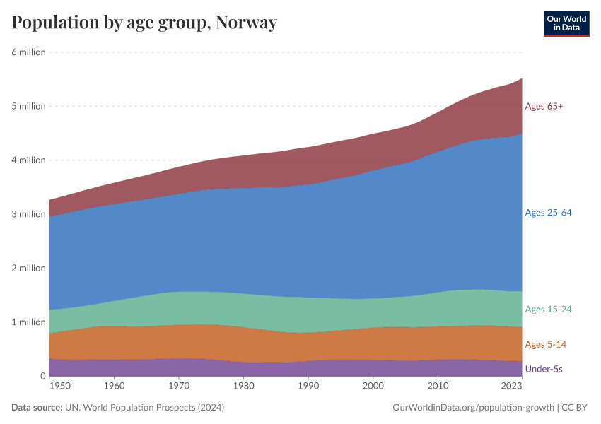 Hannah Ritchie (2026) - “Population and Demography” Published online at OurWorldinData.org. Retrieved from: 'https://ourworldindata.org/profile/population-demography/norway' [Online Resource]BibTeX citation