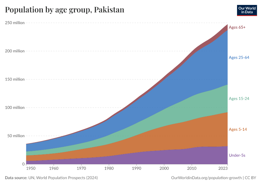 Hannah Ritchie (2026) - “Population and Demography” Published online at OurWorldinData.org. Retrieved from: 'https://ourworldindata.org/profile/population-demography/pakistan' [Online Resource]BibTeX citation