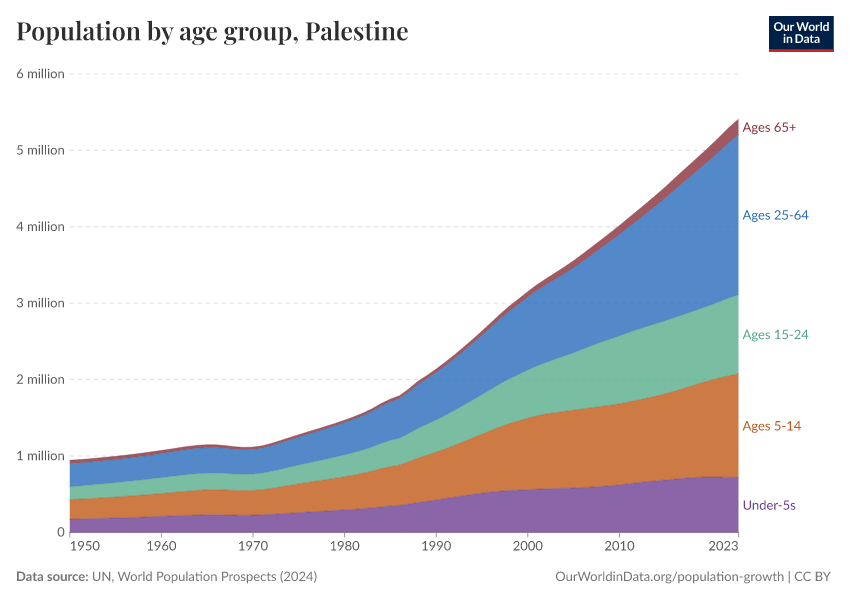 Hannah Ritchie (2026) - “Population and Demography” Published online at OurWorldinData.org. Retrieved from: 'https://ourworldindata.org/profile/population-demography/palestine' [Online Resource]BibTeX citation