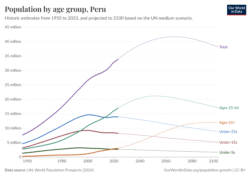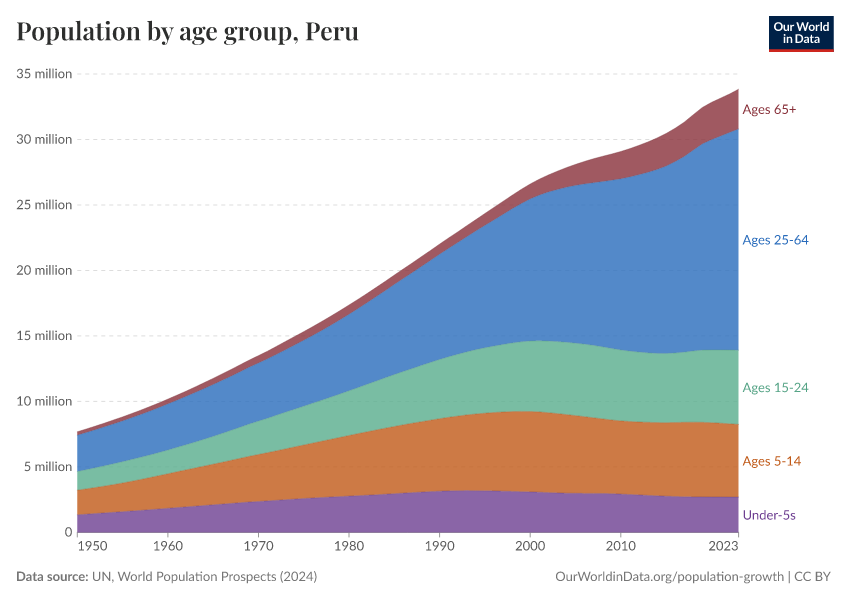 Hannah Ritchie (2026) - “Population and Demography” Published online at OurWorldinData.org. Retrieved from: 'https://ourworldindata.org/profile/population-demography/peru' [Online Resource]BibTeX citation