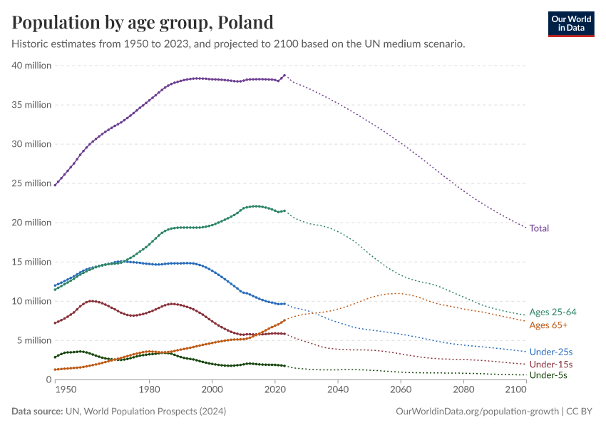Hannah Ritchie (2026) - “Population and Demography” Published online at OurWorldinData.org. Retrieved from: 'https://ourworldindata.org/profile/population-demography/poland' [Online Resource]BibTeX citation