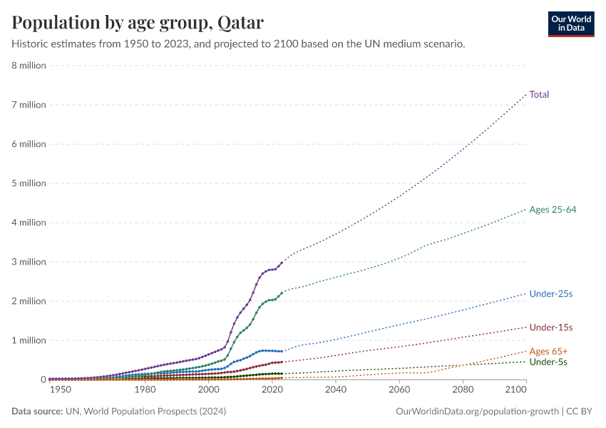 Hannah Ritchie (2026) - “Population and Demography” Published online at OurWorldinData.org. Retrieved from: 'https://ourworldindata.org/profile/population-demography/qatar' [Online Resource]BibTeX citation