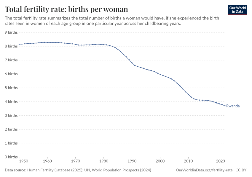 In 2023, Rwanda’s total fertility rate was 3.7 births per woman.