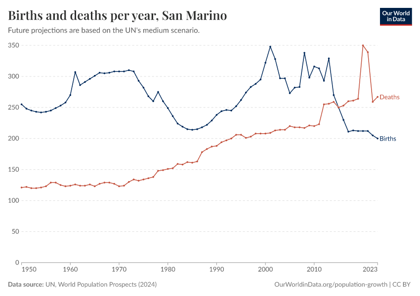 Hannah Ritchie (2026) - “Population and Demography” Published online at OurWorldinData.org. Retrieved from: 'https://ourworldindata.org/profile/population-demography/san-marino' [Online Resource]BibTeX citation