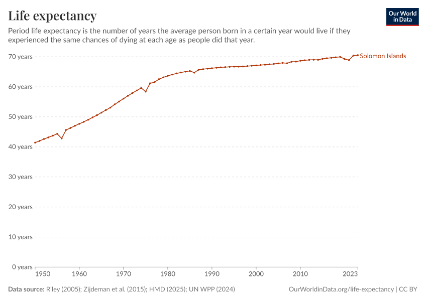 In 2023, the Solomon Islands’ life expectancy at birth was 70.5 years.