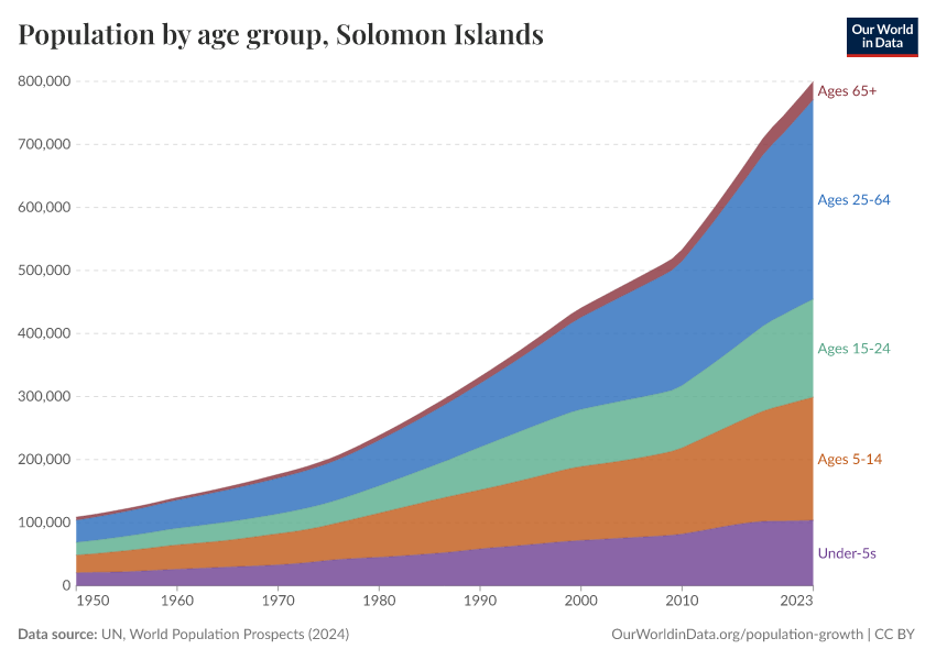 Hannah Ritchie (2026) - “Population and Demography” Published online at OurWorldinData.org. Retrieved from: 'https://ourworldindata.org/profile/population-demography/solomon-islands' [Online Resource]BibTeX citation