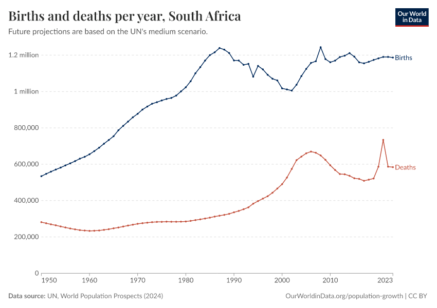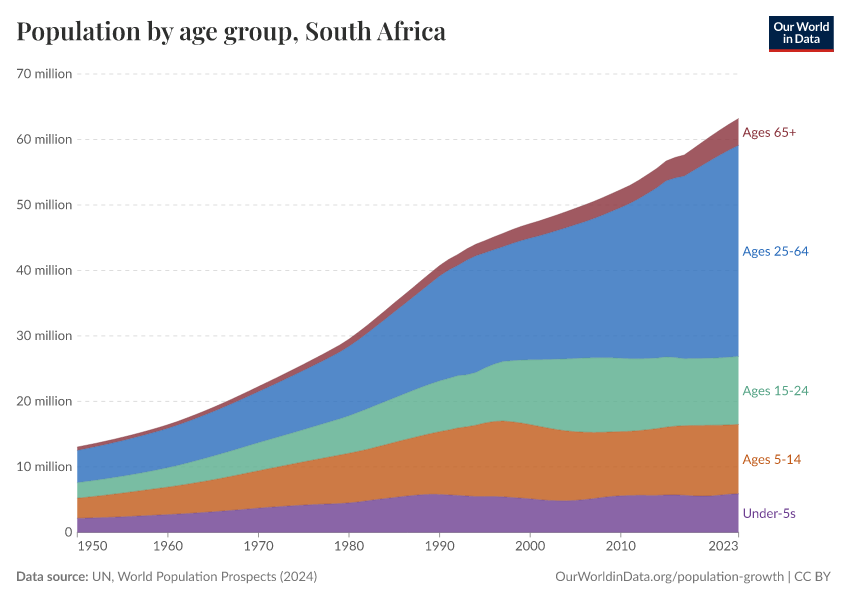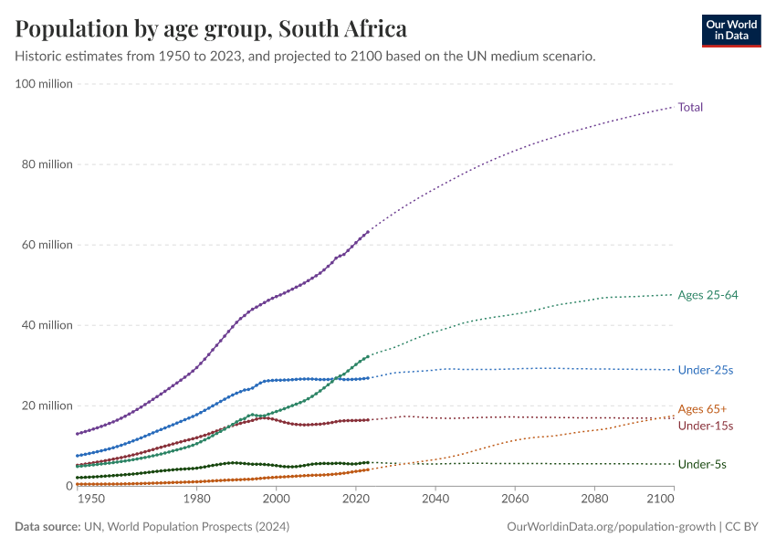 Hannah Ritchie (2026) - “Population and Demography” Published online at OurWorldinData.org. Retrieved from: 'https://ourworldindata.org/profile/population-demography/south-africa' [Online Resource]BibTeX citation