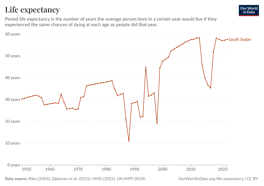 What is South Sudan’s life expectancy?