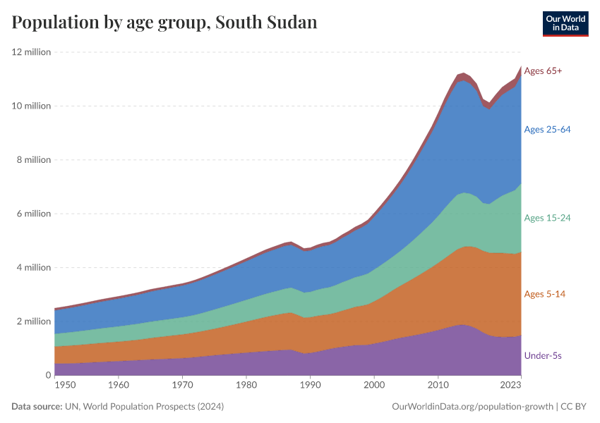 Hannah Ritchie (2026) - “Population and Demography” Published online at OurWorldinData.org. Retrieved from: 'https://ourworldindata.org/profile/population-demography/south-sudan' [Online Resource]BibTeX citation