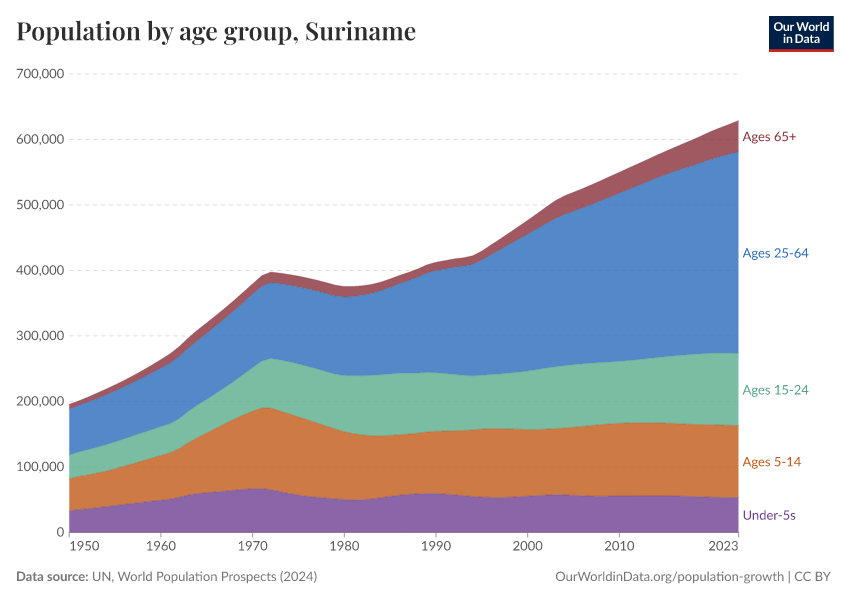 Hannah Ritchie (2026) - “Population and Demography” Published online at OurWorldinData.org. Retrieved from: 'https://ourworldindata.org/profile/population-demography/suriname' [Online Resource]BibTeX citation