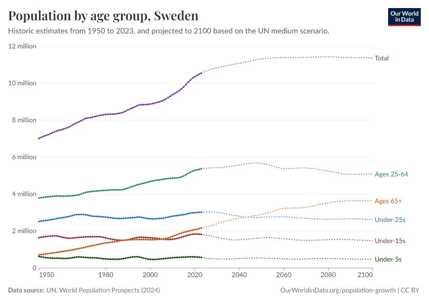 Hannah Ritchie (2026) - “Population and Demography” Published online at OurWorldinData.org. Retrieved from: 'https://ourworldindata.org/profile/population-demography/sweden' [Online Resource]BibTeX citation