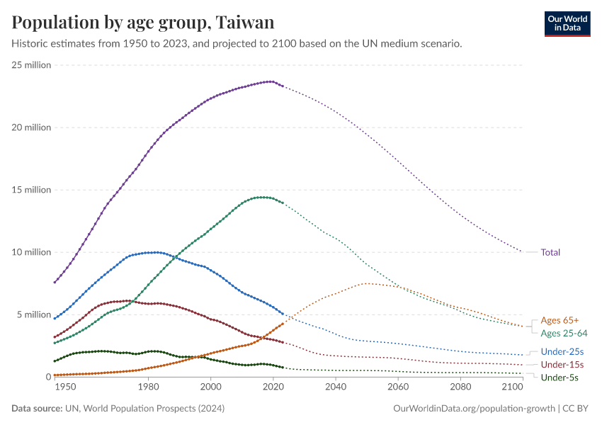 Hannah Ritchie (2026) - “Population and Demography” Published online at OurWorldinData.org. Retrieved from: 'https://ourworldindata.org/profile/population-demography/taiwan' [Online Resource]BibTeX citation