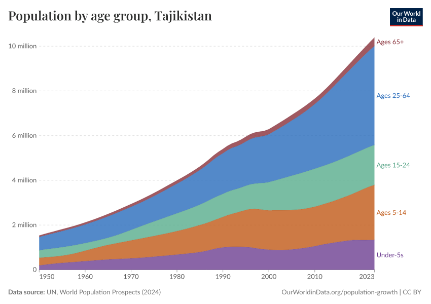 Hannah Ritchie (2026) - “Population and Demography” Published online at OurWorldinData.org. Retrieved from: 'https://ourworldindata.org/profile/population-demography/tajikistan' [Online Resource]BibTeX citation