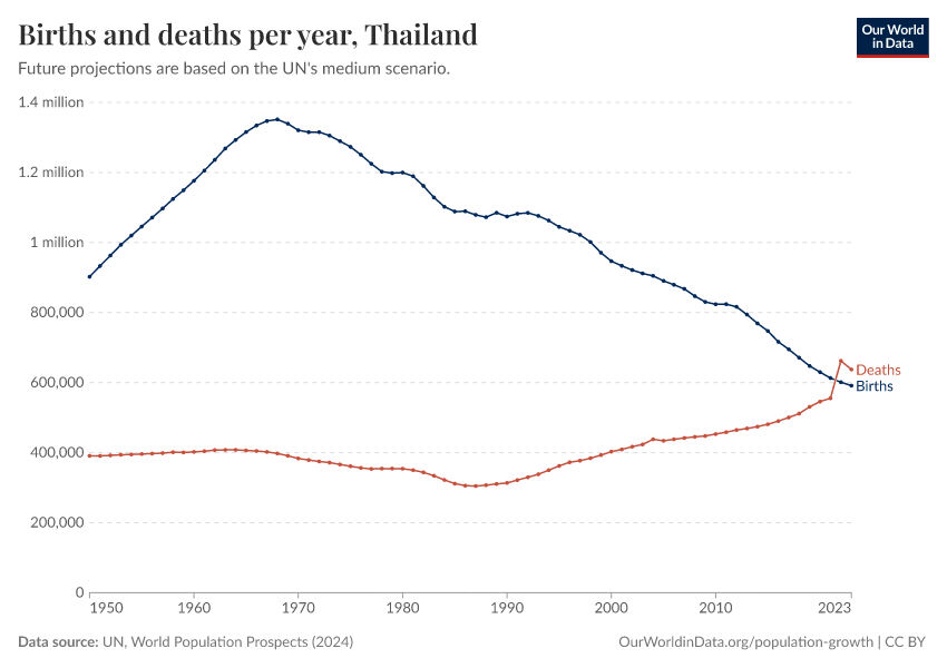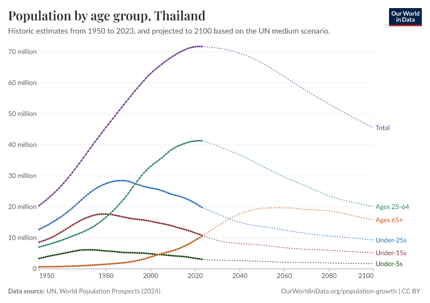 Hannah Ritchie (2026) - “Population and Demography” Published online at OurWorldinData.org. Retrieved from: 'https://ourworldindata.org/profile/population-demography/thailand' [Online Resource]BibTeX citation