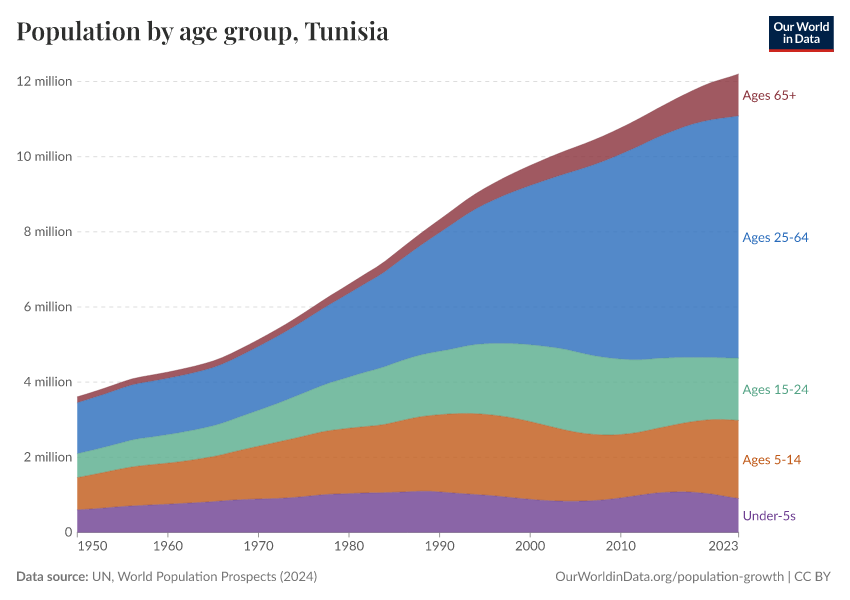 Hannah Ritchie (2026) - “Population and Demography” Published online at OurWorldinData.org. Retrieved from: 'https://ourworldindata.org/profile/population-demography/tunisia' [Online Resource]BibTeX citation