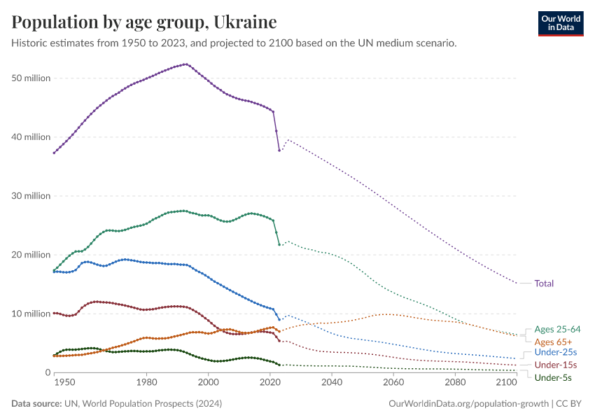 Hannah Ritchie (2026) - “Population and Demography” Published online at OurWorldinData.org. Retrieved from: 'https://ourworldindata.org/profile/population-demography/ukraine' [Online Resource]BibTeX citation