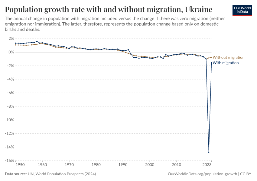 What is Ukraine’s population growth rate with migration?