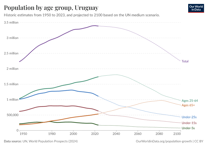 Hannah Ritchie (2026) - “Population and Demography” Published online at OurWorldinData.org. Retrieved from: 'https://ourworldindata.org/profile/population-demography/uruguay' [Online Resource]BibTeX citation