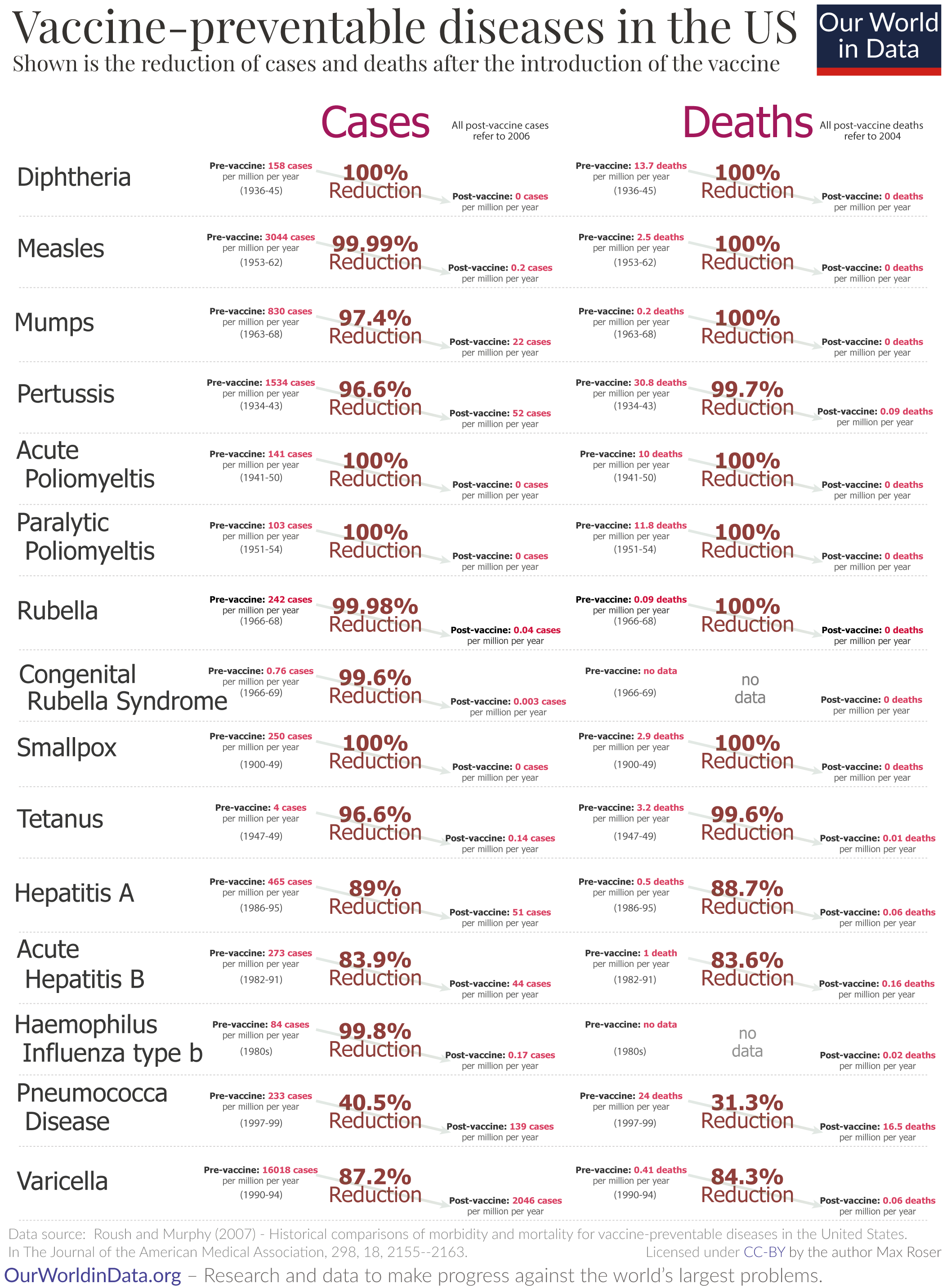 Roush and Murphy (2007) — Historical comparisons of morbidity and mortality for vaccine-preventable diseases in the United States. In the Journal of the American Medical Association, 298, 18, 2155–2163. here