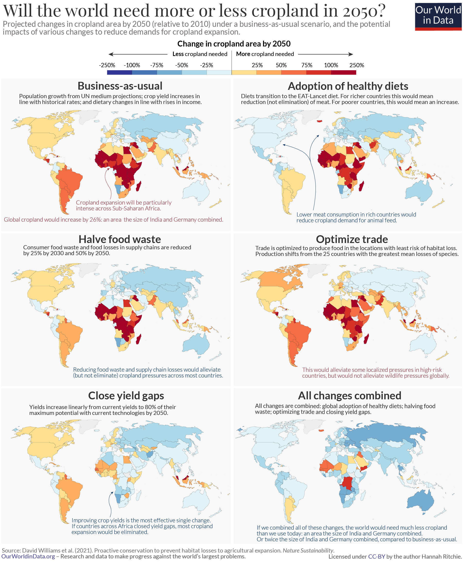 Hannah Ritchie (2021) - “To protect the world’s wildlife, we must improve crop yields — especially across Africa” Published online at OurWorldinData.org. Retrieved from: 'https://archive.ourworldindata.org/20251125-173858/yields-habitat-loss.html' [Online Resource] (archived on November 25, 2025).BibTeX citation